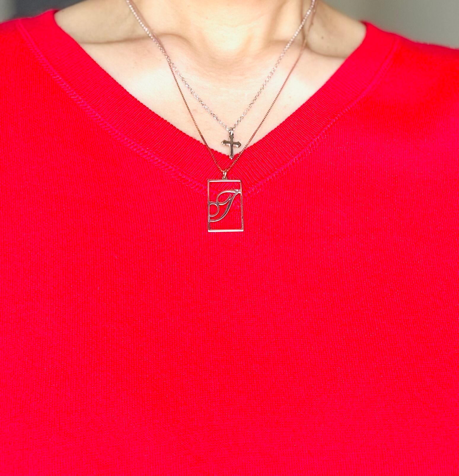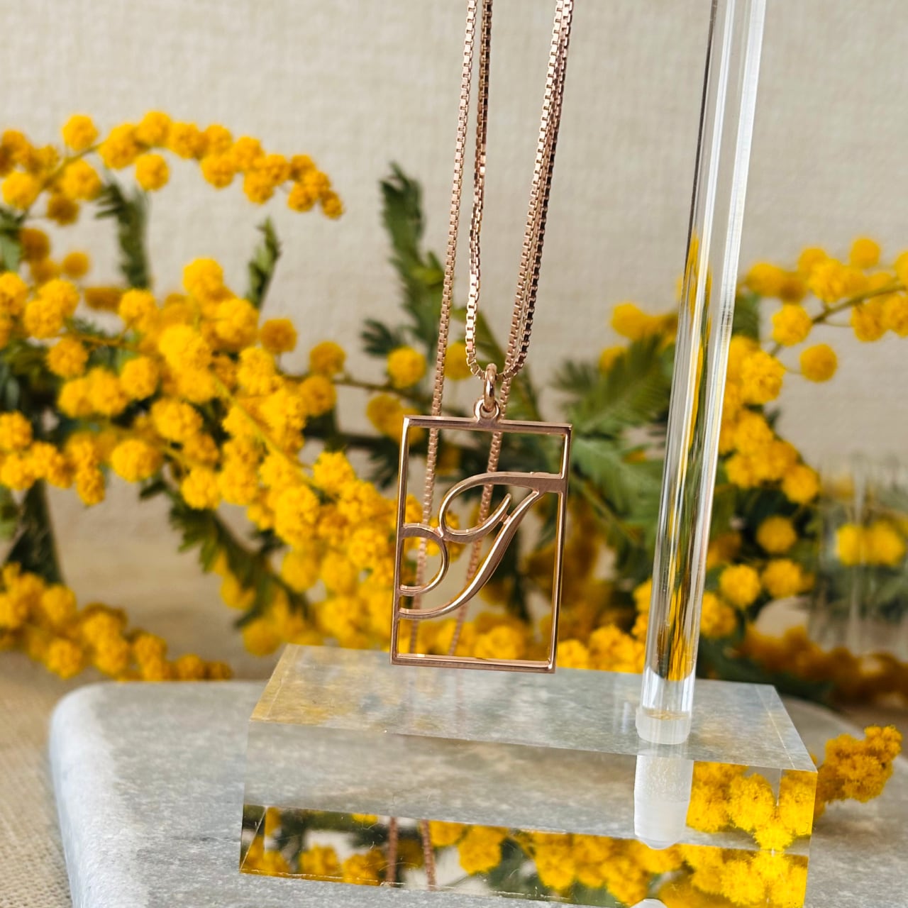 イニシャルカード・ペンダントネックレス (Pink Gold / Gold)~お好きなイニシャルを1文字彫刻できます~