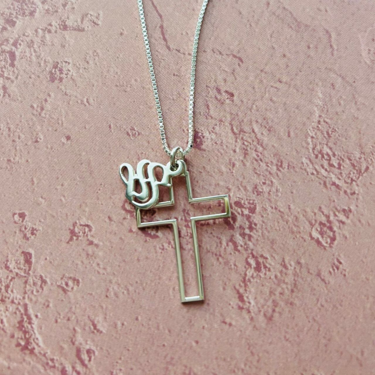 オープン・クロスペンダントに、イニシャルチャームが付くことでお客様だけの特別感を演出してくれます。 素材は最高級のSilver 925を使用、お好みに合わせて24Kかローズ・ゴールド・プレーティングの選択も可能です。エッジの効いたフォントデザインも特徴です。ご希望のイニシャルとクロスのコンビネーションがお客様の個性を輝かせます☆