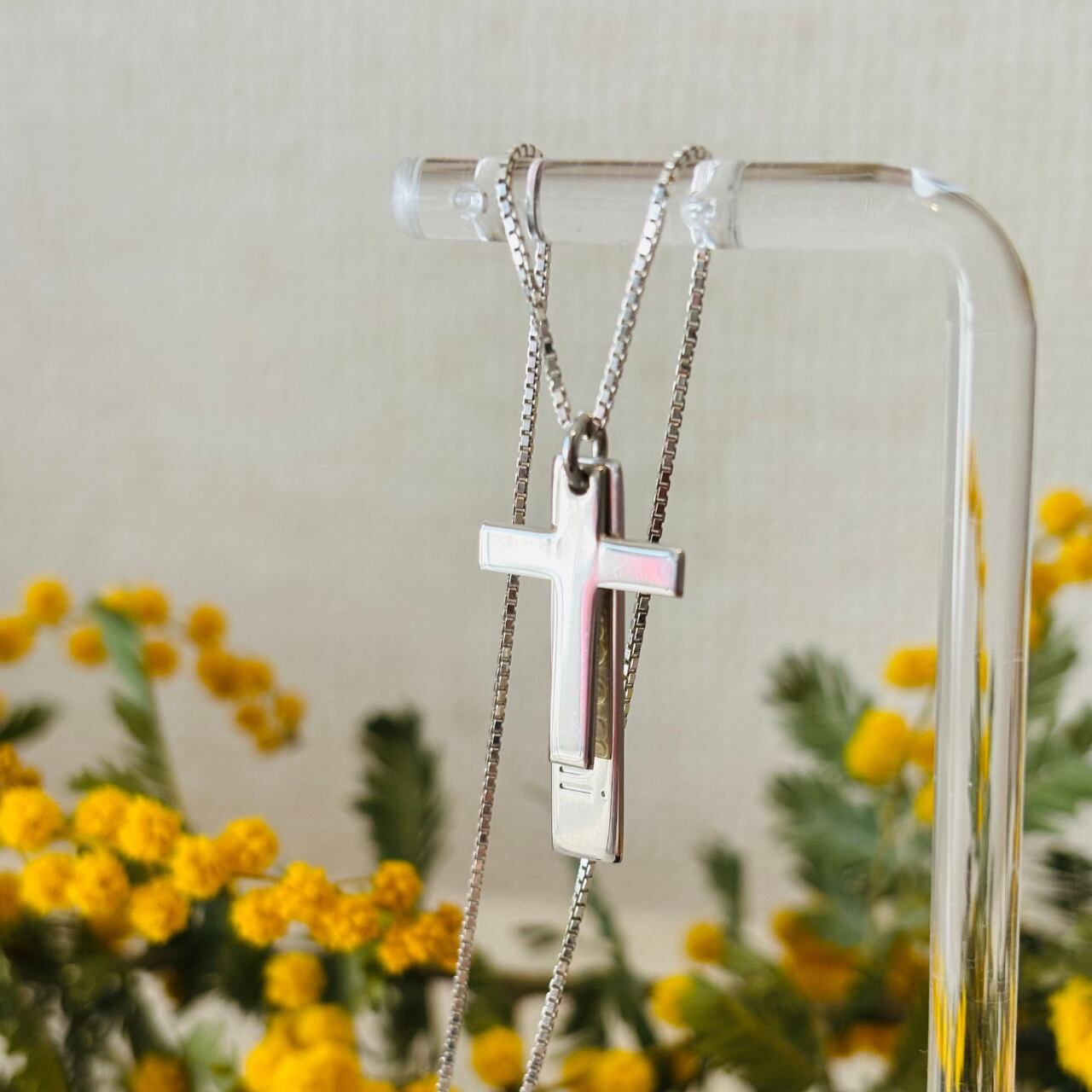 Cross and Engraved bar Necklace (SV)~チャームにアルファベットでお名前の印字が可能です~
