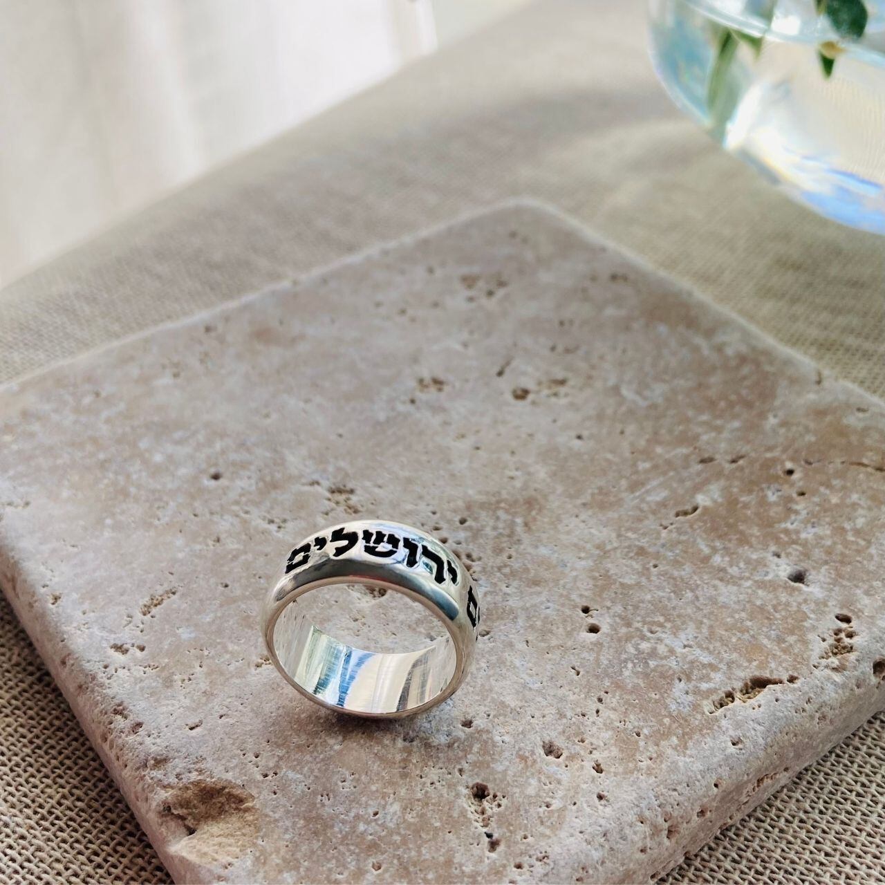 *画像の彫刻は「Pray for the peace of Jerusalem」をヘブライ文字で彫刻したものに